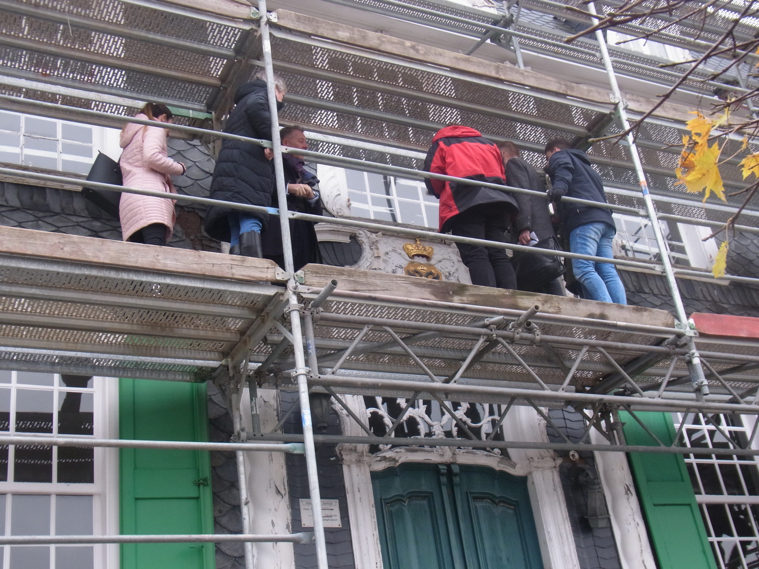 Start Bei einer Führung über das Baugerüst erläuterte Bramlage die Herangehensweise der Sanierung. Foto vom sicheren Boden aus geschossen: Peter Klohs Bei einer Führung über das Baugerüst erläuterte Bramlage die Herangehensweise der Sanierung. Foto vom sicheren Boden aus geschossen: Peter Klohs