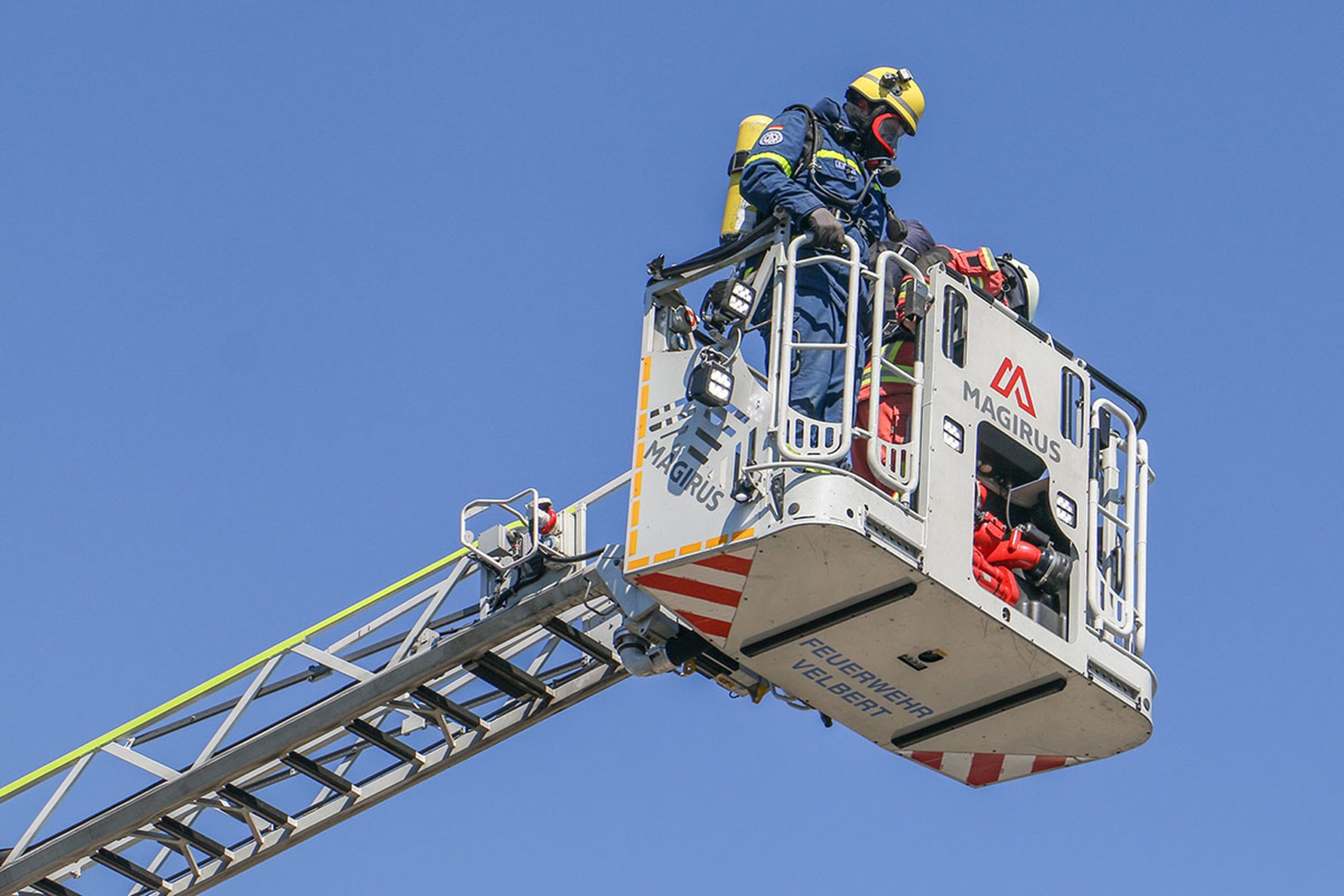 Start Helfer des Velberter THW brachten unter Atemschutz und mit Hilfe der Drehleiter der Velberter Feuerwehr die Mess-Spiegel für das Einsatzstellen-Sicherungs-System (ESS) an. Foto: THW / Elias El Ghorchi (THW Remscheid) Helfer des Velberter THW brachten unter Atemschutz und mit Hilfe der Drehleiter der Velberter Feuerwehr die Mess-Spiegel für das Einsatzstellen-Sicherungs-System (ESS) an. Foto: THW / Elias El Ghorchi (THW Remscheid)