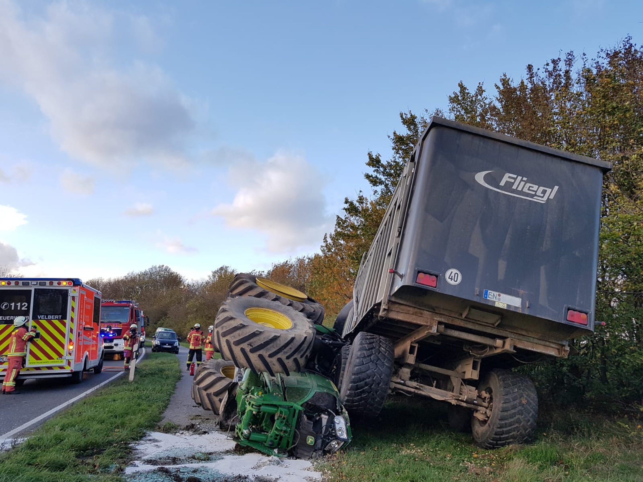 Start Der schwere Anhänger begrub die Fahrerkabine des Treckers unter sich. Foto: Feuerwehr Velbert Der schwere Anhänger begrub die Fahrerkabine des Treckers unter sich. Foto: Feuerwehr Velbert